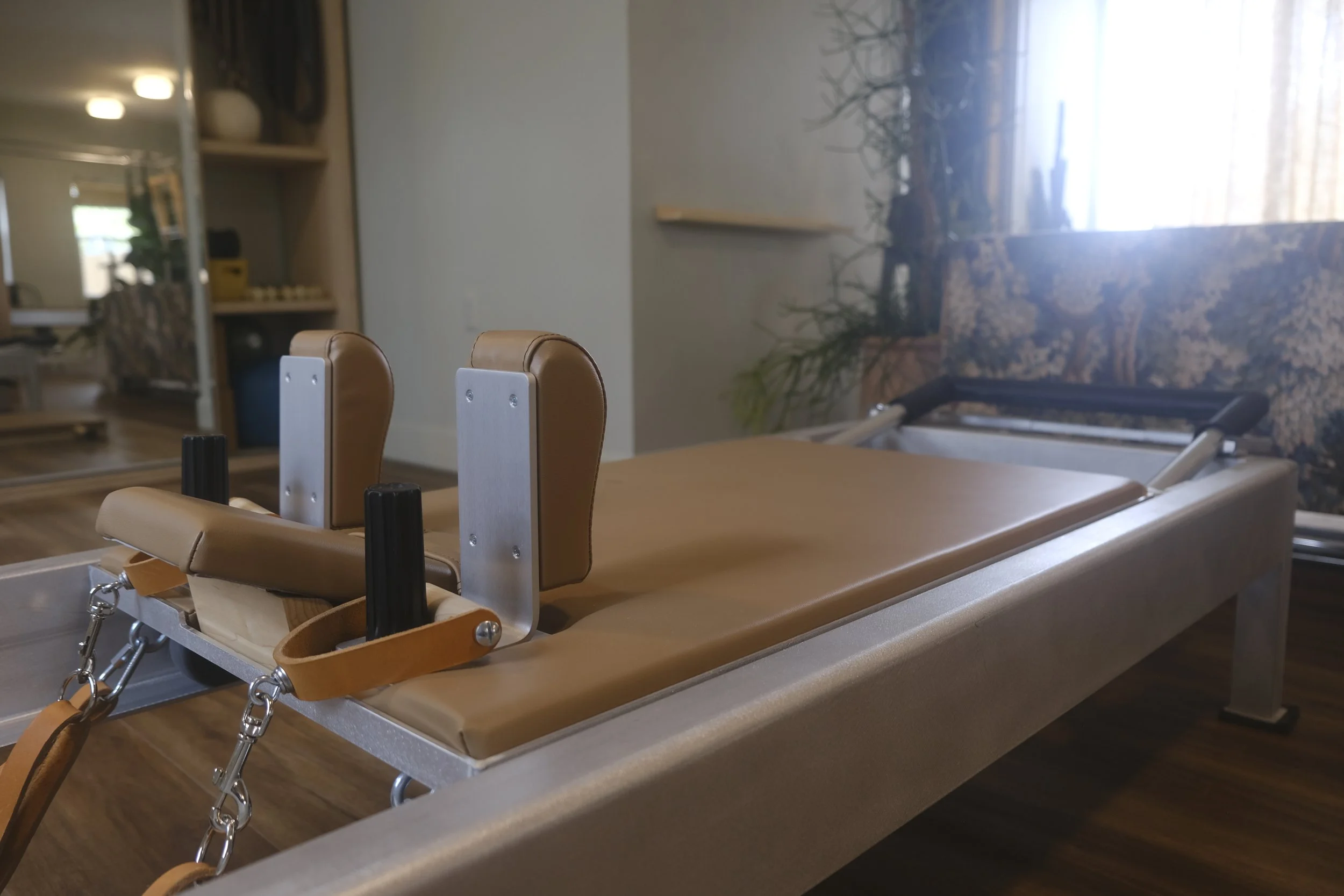The studio no longer looks like a garage, but is equipped with reformers, wunda chairs, wall towers, high mats, a Cadillac, and a ladder barrel. Each piece crafted by Balanced Body/ Contrology to re-create the functionality of a Pilates studio of the 60s or 70s. It supports and challenges just where you need it. I never get tired of the “sproing-y” noises of springs being worked.